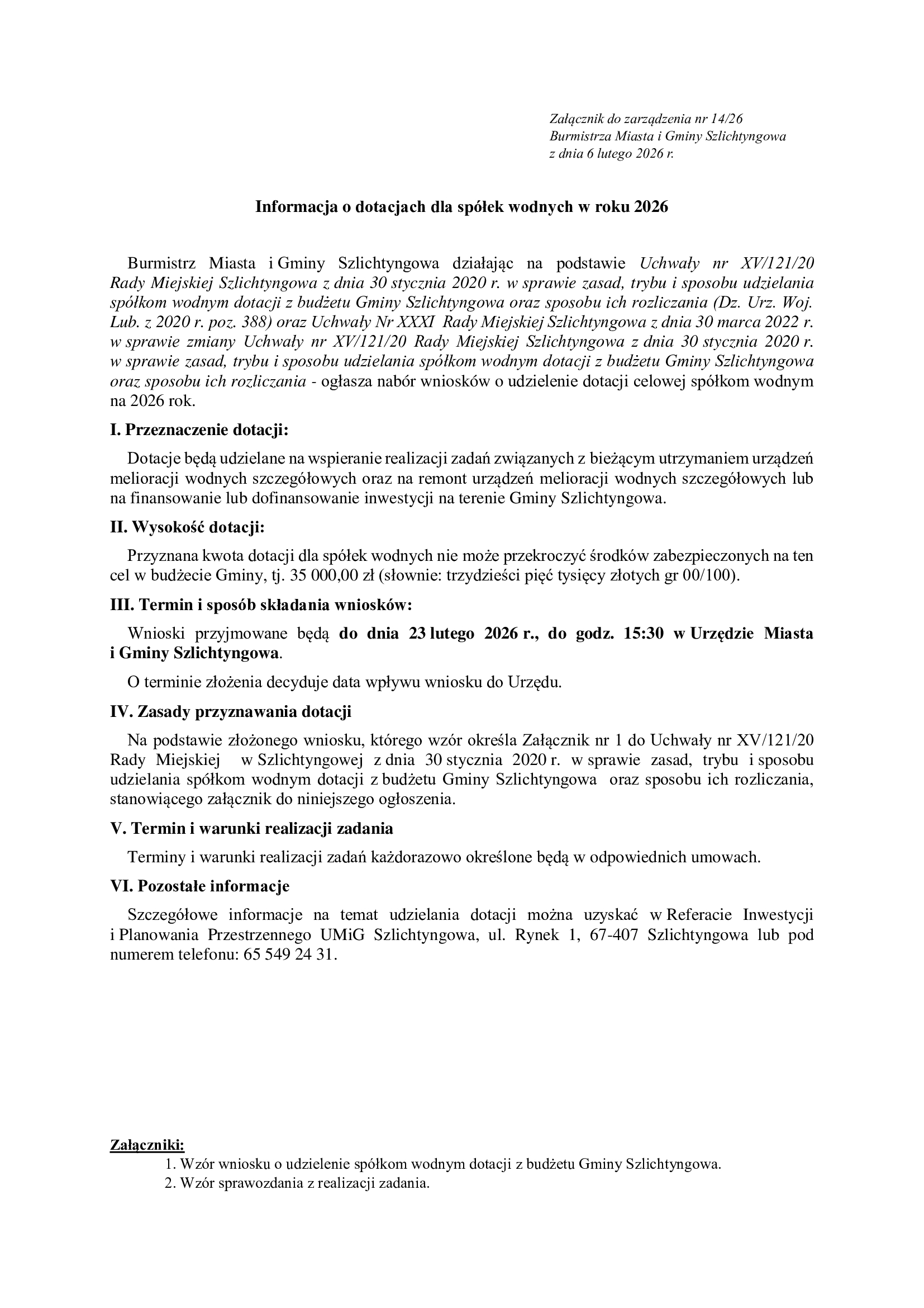 Informacja o dotacjach dla spółek wodnych w roku 2026